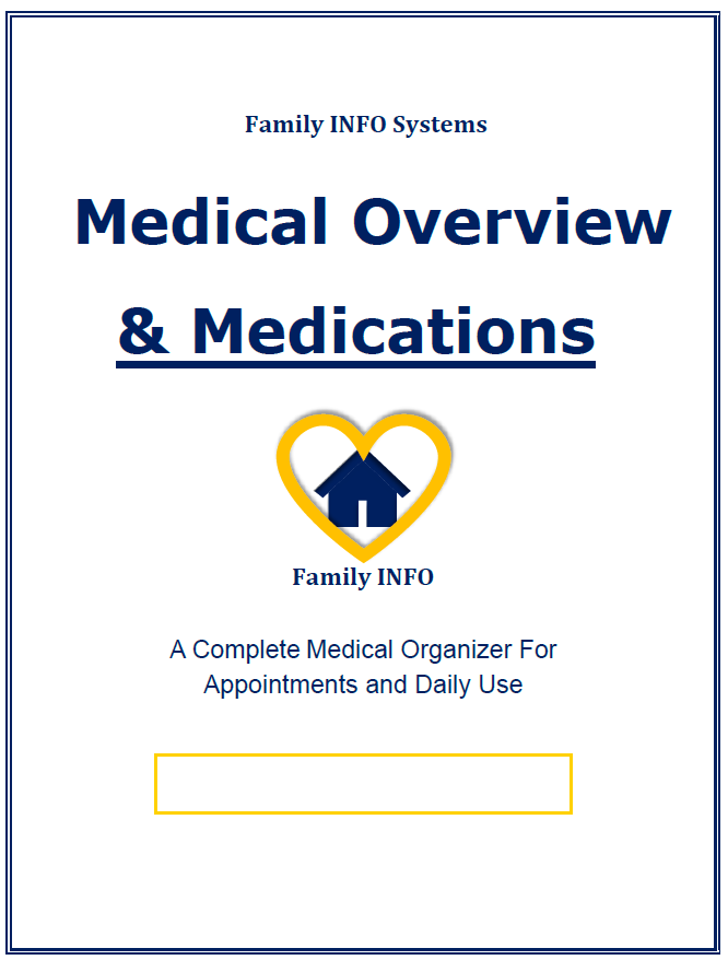 • Medication Log: purpose, dose, prescribing doctor, and clear instructions