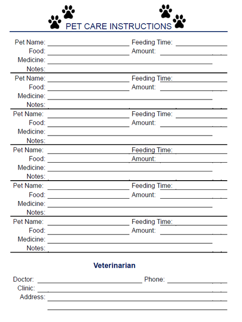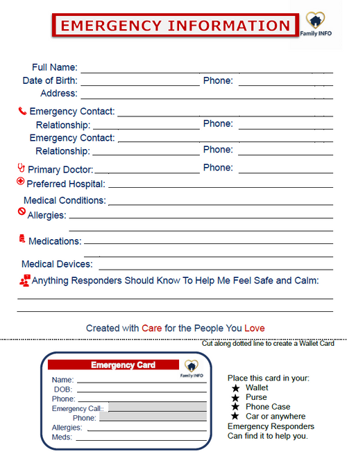 • Medication Log: purpose, dose, prescribing doctor, and clear instructions